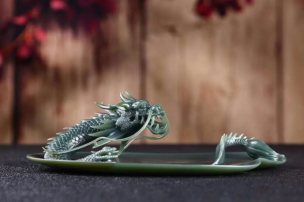 青玉器皿是极其常见的,它特有的细密度使其有很好的塑造性,一些高难度的镂空摆件和薄胎水上漂器皿都常见青玉身影。玉料价位合适,玉质塑造性强,是可以搞创作又节约成本的理想玉料。