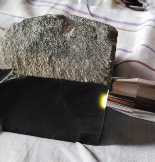 塔青大多打灯透光是:青绿色,也有黄绿色(可能是串糖的缘故)。塔青有透光极小,也有透光比较大的,透光小,可能阳闪石和石墨成分大,透光大的一般玉质不是很细腻。