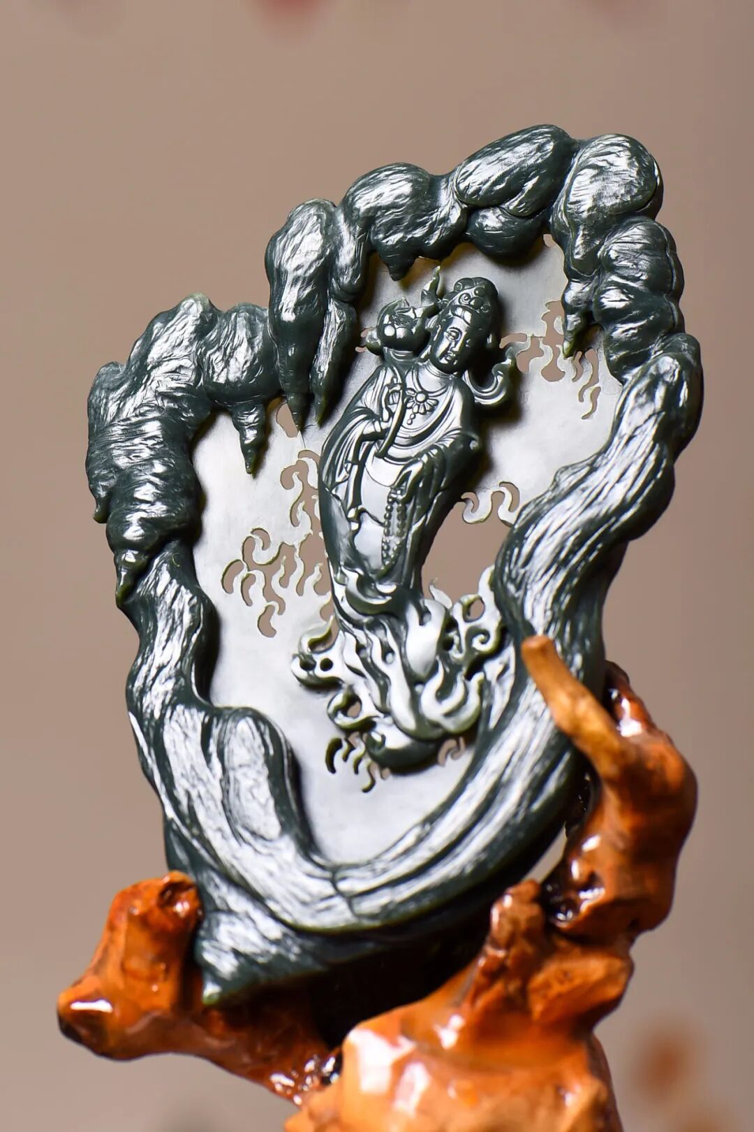 青玉所代表的可能不是人们传统认知中和田玉白的美,它更多表达的是玉雕的美。所以从很多玉雕题材中我们都能看到青玉的身影。